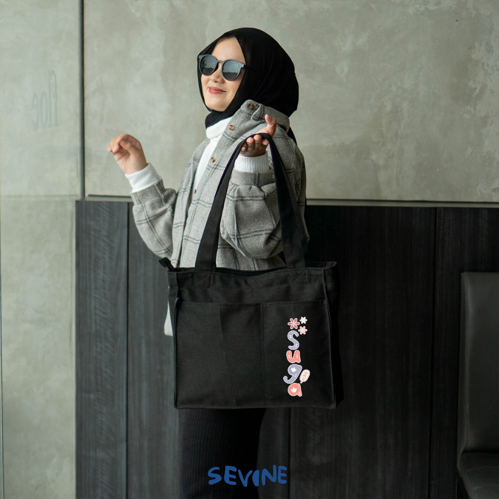Detail Sevine Totebag Kanvas Rebecca Tas Wanita Tote Bag Kuliah Sekolah Sekat Laptop Hitam Tebal Elegan Kpop Korea Aesthetic - PH