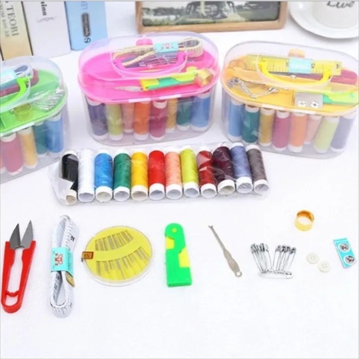 SET ALAT JAHIT PERALATAN MENJAHIT MINI Set alat jahit dengan kemasan kotak, cocok untuk perlengkapan jahit saat tambal atau jahit pakaian sobek. Dengan kemasan berbentuk kotak plastik, mudah disimpan dan mudah dicari saat dibutuhkan, serta mudah dibawa kemana saja.
