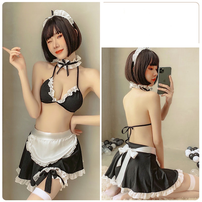 Ready warna : hitam, All Size ( Lingkar pinggang 72 - 104cm,Cocok S - XL ) 1 pcs Bra 1 pcs Rok min 1 pcs G String 1 Pcs Celemek 1 pcs kalung 1 pcs Cincin kaki