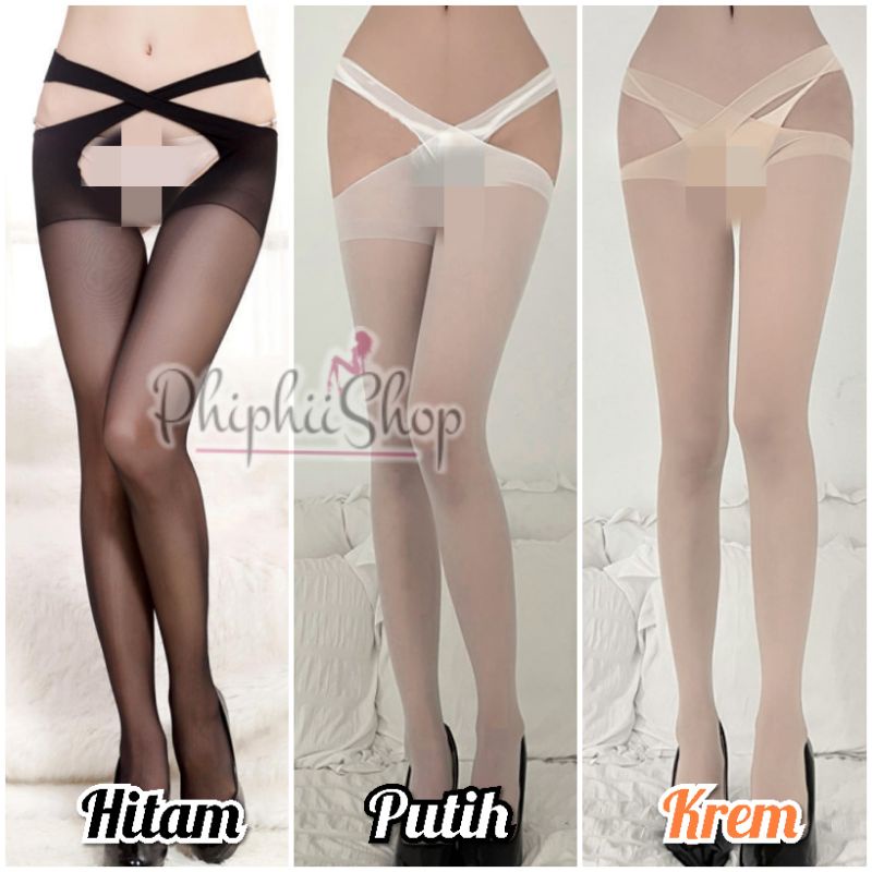 Detail Sexy Stocking Stoking Wanita Kantor Kerja Pantyhose Model Silang Open Crotch