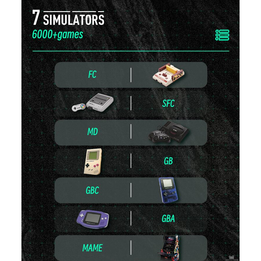 * Name: SF2000 Handheld Game Station * System: SGE2.0 * Screen:3.0 Inch/IPS * Function: With search function, collection function, game progress saving function * Wireless Controller: 2.4G Wireless Controller Support 1-2 Player * Emulator: MAME/FC/GB/ GBA/ GBC/MD/SFC / * 16G version with 6000 Games. * RAM : 1GB * Input Powe : 5V/1A