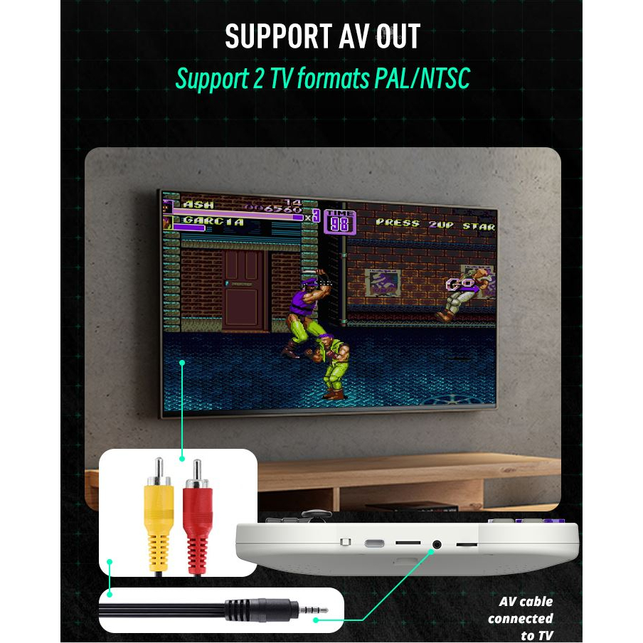 - Support AV Output The handheld game console with 3-inch HD display allows you to connect the HD screen game console to your TV via the AV output for lively and exciting video games.