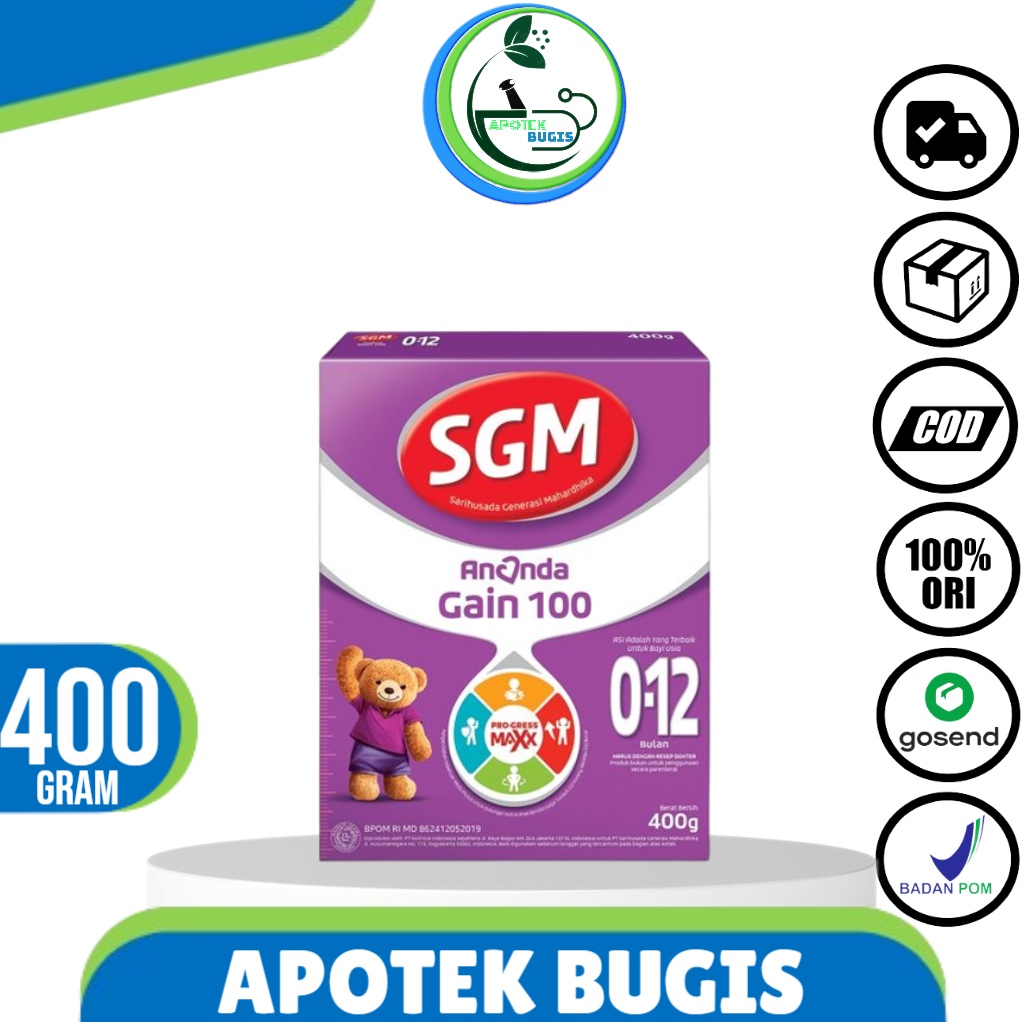 medisoncare575048 PENGGUNAAN PRODUK INI SEBAIKNYA SESUAI PETUNJUK DOKTER. SGM ANANDA GAIN 100. Formula Bayi Bubuk Formula 100 kkal/100 ml untuk bayi usia 0-12 bulan dengan indikasi berisiko gagal tumbuh, gizi kurang, atau gizi buruk. PENTING BUNDA KETAHUI, Air susu ibu adalah makanan terbaik untuk bayi Anda. Susu formula bayi bukan pengganti Air Susu Ibu (ASI). ASI Eksklusif diberikan sejak bayi lahir sampai usia 6 bulan dan dilanjutkan sampai dengan bayi berusia 2 (dua) tahun dengan pemberian makanan tambahan yang sesuai. Pemakaian SGM Ananda Gain 100 atas nasehat dokter, bidan dan perawat independent berdasarkan indikasi medis.