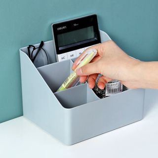 Kotak penyimpanan organizer kosmetik, menggunakan bahan PP, permukaan halus, mudah dibersihkan. Dirancang untuk sisi kiri, mengambil sedikit ruang. Simpan di kantor, kamar mandi, ruang belajar, dan dapur. Nama: kotak penyimpanan makeup Bahan: polipropilena. Warna: putih, abu-abu, krem. Ukuran: 8,7 x 6,3 x 4,7 inci. Paket termasuk: 1 kotak penyimpanan desktop