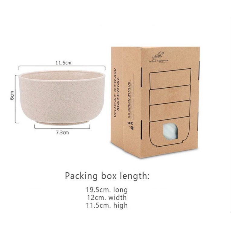 Set Mangkuk Wheat Straw/Wheat Straw Bowl Set dengan isi 4pcs, mangkuk berbahan wheat straw. Dengan bahan wheat straw yang alami, mudah terurai serta ramah lingkungan Plastik Wheat straw dapat menahan panas hingga 90 derajat celcius Set Mangkuk Wheat Straw multifungsi, bagian bawah anti selip, tepian yang halus, stylish dan reuseable