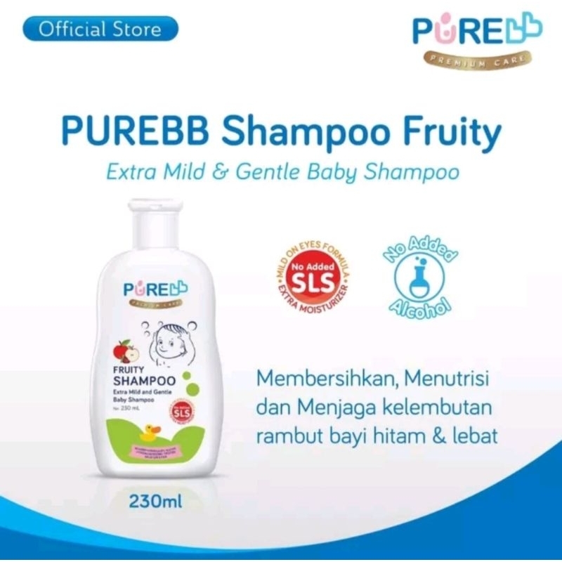 PURE BB Shampoo 230ml Shampoo untuk menjaga kebersihan rambut dan kulit kepala bayi yang di formulasikan khusus dengan standar Europe Low Hazard 0- 2 , Tanpa SLS (sodium laurly sulfate) dan sudah teruji klinis hypoallergenic, lembut di mata ( MILD ON EYES) dengan pH 5.5 . membuat rambut bayi menjadi halus lembut , lebih tebal dan tetap sehat.