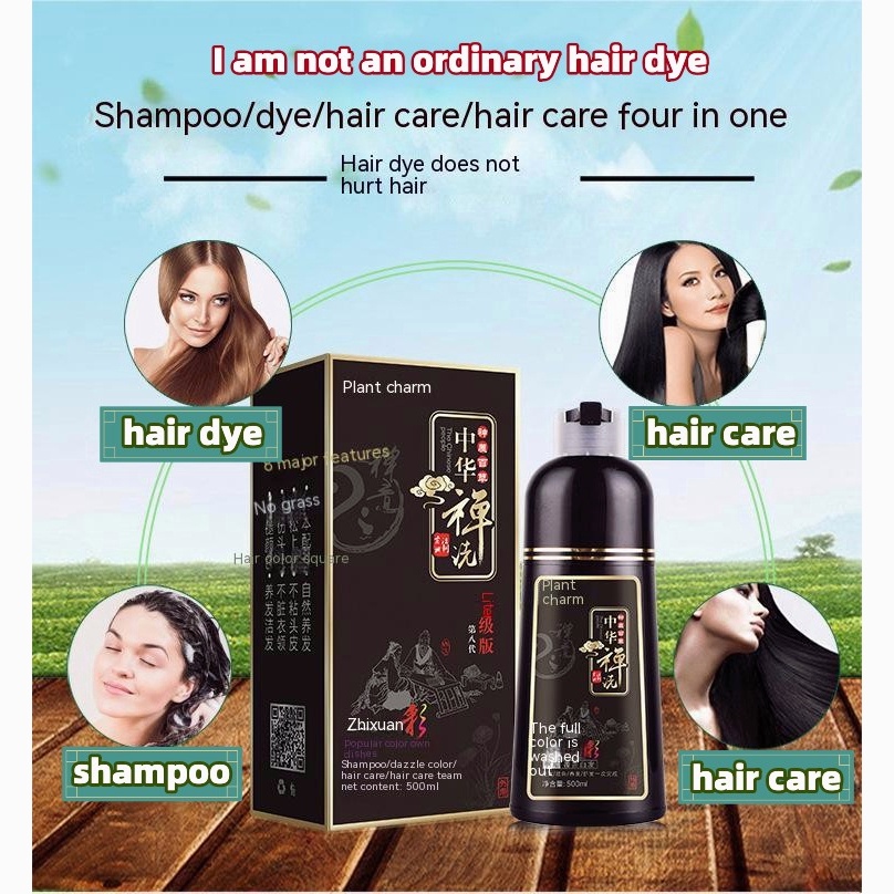 Shampoo Pewarna Rambut/Shampoo Semir Rambut Penutup uban Herbal/Shampoo Warna ZEN ZHI RAN MEI Original 500ml Hair Color(Bisa Menutupi uban)Hair Dye Black/Brown