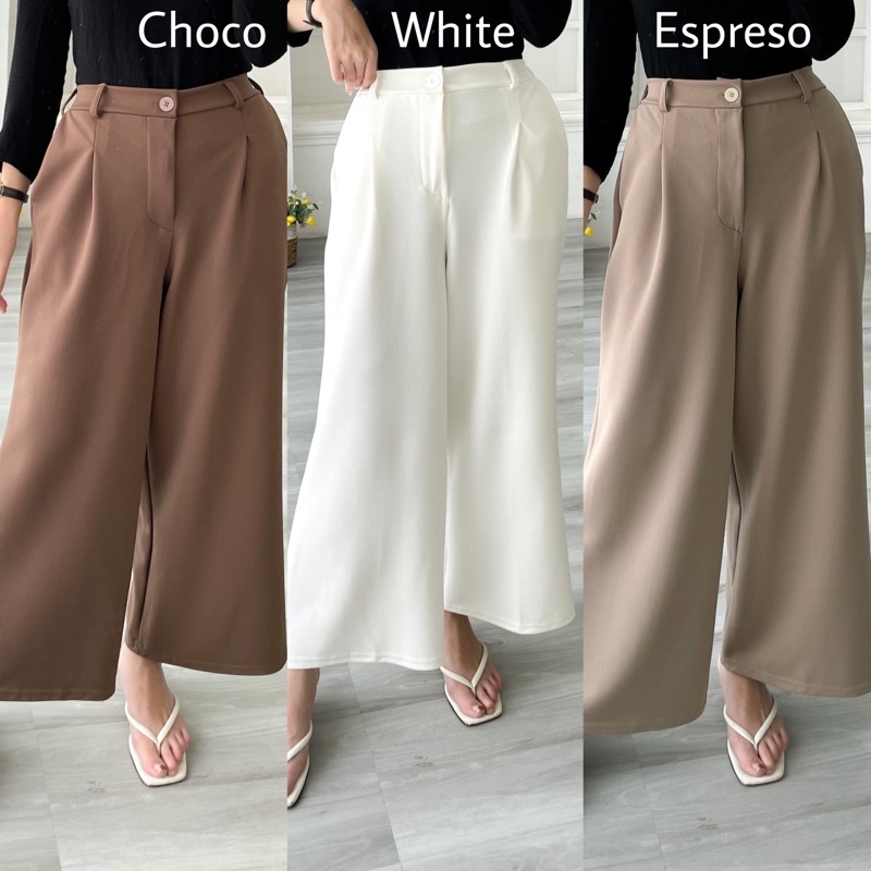 SHARENA 2 CULLOTE (awal) : bahan scuba crepe bagian dalam lembut nyaman di pakai Ga mudah kusut, ada kancing dan sleting depan,bagian belakang karet,ada kantong kanan kiri (cek detail), dijamin bagus bahannya❤️ : lingkar pinggang -+ 70-116 lingkar paha -+ 64 pjg -+ 95 berat 435 gr