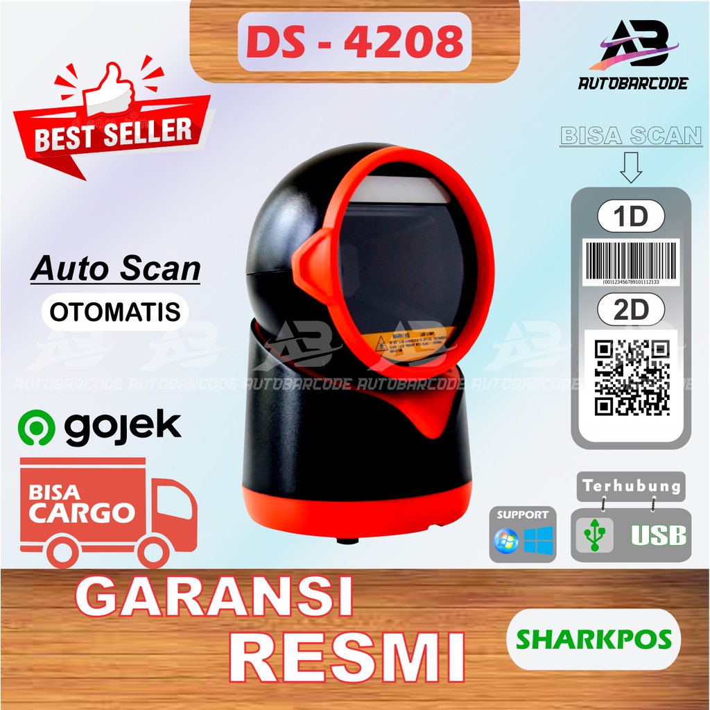 Komputer & Aksesoris > Printer & Scanner > Printer, Scanner & Mesin Fotokopi > SHARKPOS DS4208 / DS 4208 / DS-4208 1D/2D Omni Barcode Scanner Auto Scan USB Auto Sensing QR Code Scan Efaktur