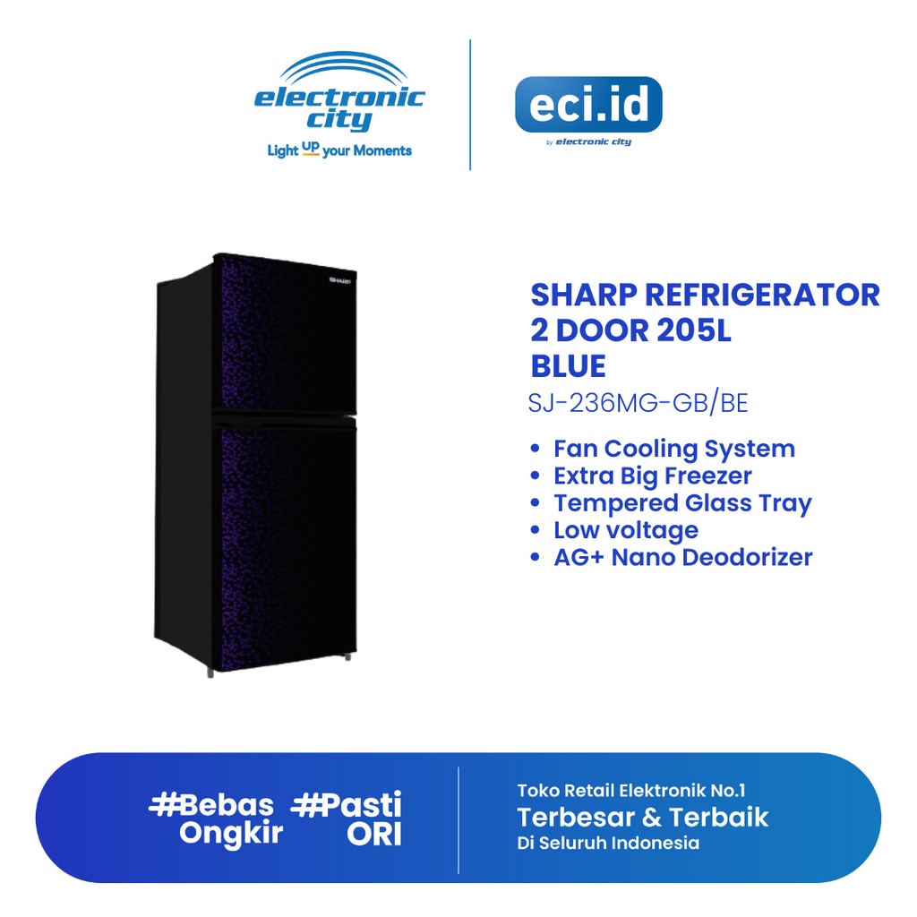 Detail Sharp Kulkas 2 Pintu 205 Liter - SJ-236MG-GB Blue
