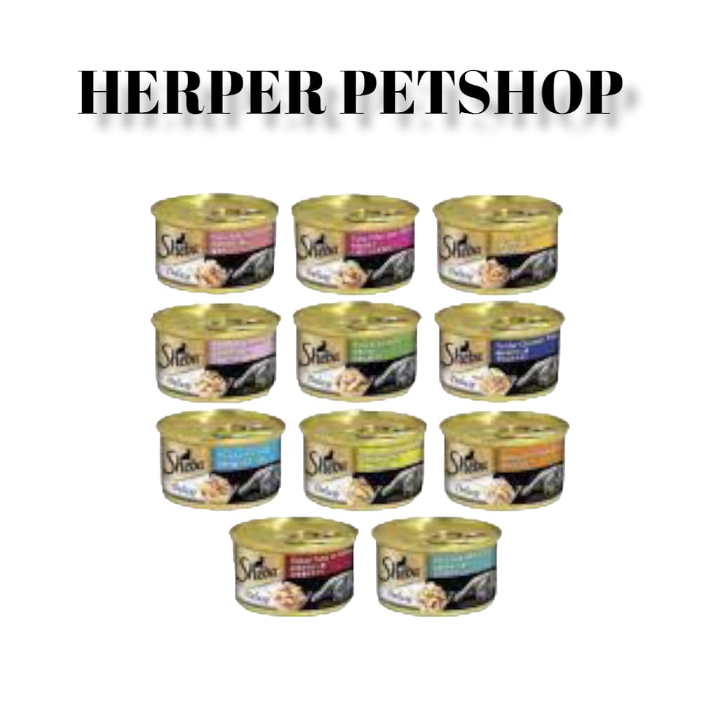 Sheba wet food kaleng 85gr adalah makanan basah kucing untuk semua jenis kucing. Sheba wet food terbuat dari bahan-bahan berkualitas yaitu 100% ikan segar dengan protein berkualitas tinggi, rempah segar dan sayuran serta tanpa menggunakan bahan pengawet dan pewarna tambahan. Dan resep tersebut sudah disetujui oleh dokter hewan. Terdapat 5 varian rasa yaitu ✔ Tuna & Salmon (Tuna Salmon) ✔ Tuna & Snapper (Tuna Snapper) ✔ Tuna Fillet & Prawn (Tuna Prawn) ✔ Flaked Tuna ✔ Succulent Chicken Breast