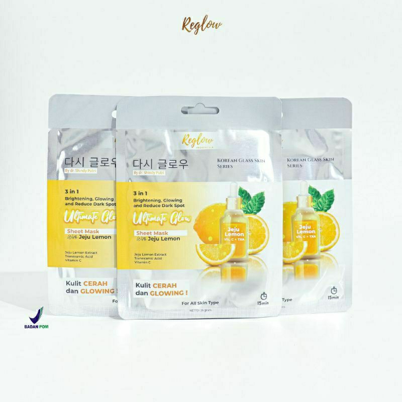 Detail Sheet Mask Reglow Skincare dr Shindy 3in1 Ultimate Glow With Jeju Lemon Masker Wajah Glowing