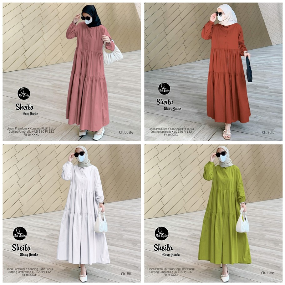 Detail SHEILA MAXY JUMBO / 7.4 / BAHAN LINEN PREMIUM / LD 120 CM / PB 132 CM / ALLSIZE JUMBO FIT TO XXXL / RIA EIGHTY