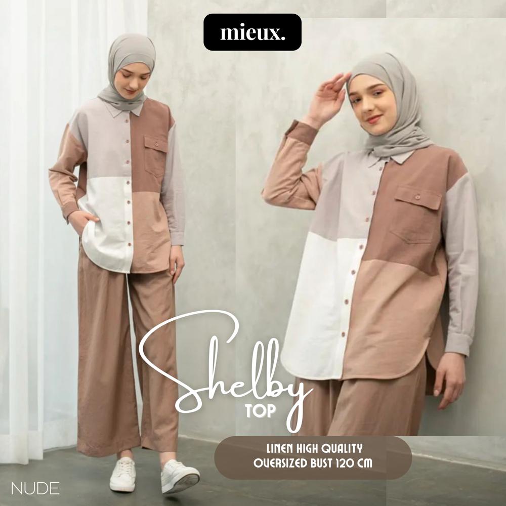 Detail Shelby Linen Premium Kemeja Atasan Wanita All Size Original Produk By Mieux
