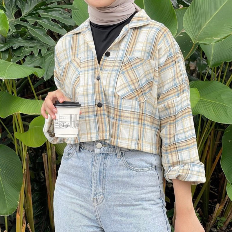 Detail : • Outer model crop • Berkerah • Full kancing hidup • Ada 2 saku bagian kanan kiri
