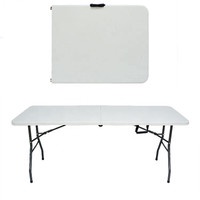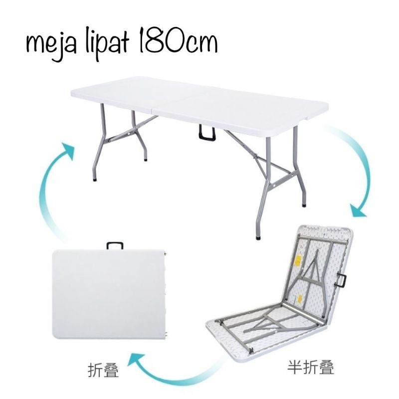 Material : HDPE, steel - Ketebalan Daun Meja : 40 mm - Dimensi Meja Posisi Buka : 180 cm x 74 cm x 74 cm - Dimensi Meja Posisi Lipat : 90 cm x 74 cm x 8 cm Kaki meja dapat dilipat
