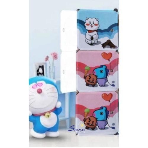 Detail SHENAR LEMARI BAJU PLASTIK 3 SUSUN / LEMARI BEDSIDE TABLE ANTI AIR / RAK 3 SUSUN / LEMARI MINI 3 PINTU - LISA LP 1X3 SUSUN, SHENARCORNER168
