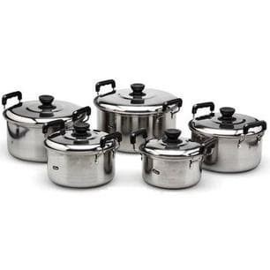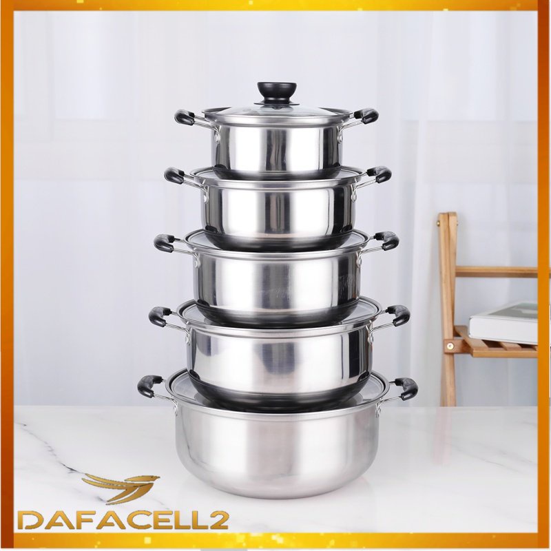 1 set terdiri dari 5 pcs ukuran sbb : Diameter 24 cm tinggi 11.5 cm, Diameter 22 cm tinggi 10.5 cm, Diameter 20 tinggi 9.5 , Diameter 18 tinggi 8.5, Diameter 16 tinggi 7.5