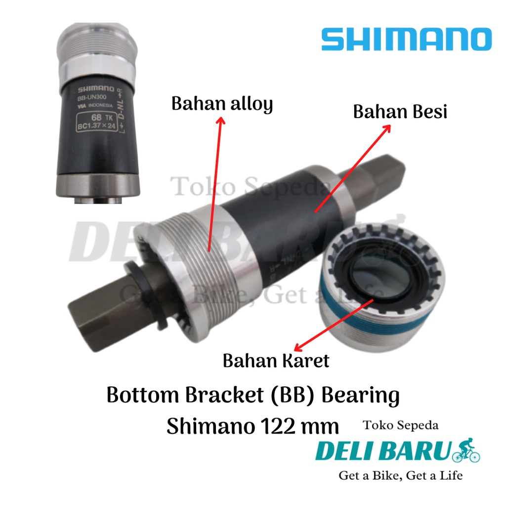 Bottom Bracket (BB) untuk sepeda MTB, sepeda federal, sepeda lipat, sepeda minion. Merk Shimano. Model as kotak. Panjang as 122 mm. Bottom bracket sudah menggunakan bearing yg sangat loncer. Kualitas bagus. Harga tertera belum termasuk Baut BB nya ya.