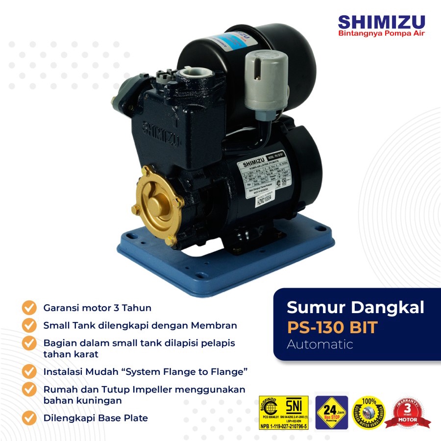PS-130 BIT ini memiliki Total Head Maximal 40 meter, disaat Head 10 meter debit air yang dihasilkan 18 liter per-menit, dan pada saat Head 22 meter debit air yang dihasilkan 10 liter per-menit. PS-130 BIT ini juga dilengkapi dengan Base Plate yang berfungsi agar kaki pompa tidak mudah berkarat dan pompa menjadi lebih stabil. PS-130 BIT juga dilengkapi dengan Thermal Protector yang berfungsi untuk mematikan arus listrik ketika motor overheat.