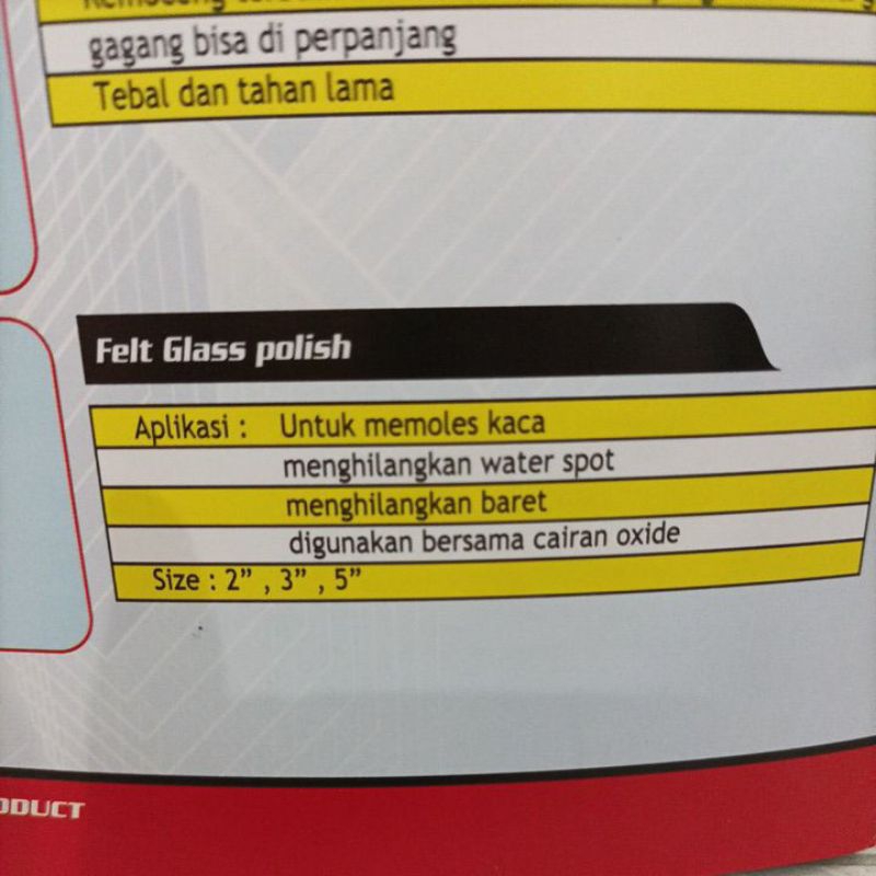 Otomotif > Perawatan Kendaraan > Poles, Coating, & Sealant Mobil > Shine Mate Felt Glass Polish 2"/3"/5"
