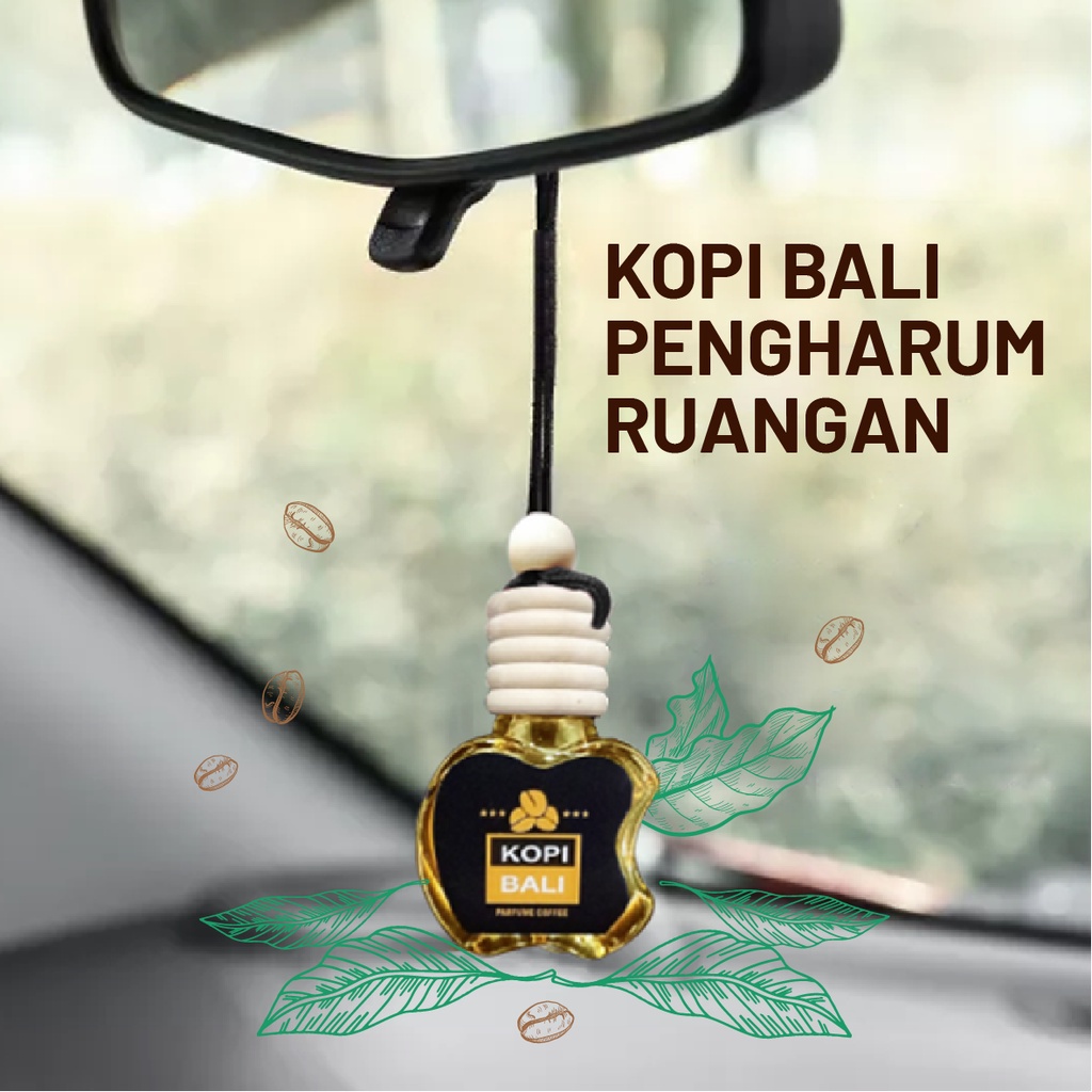 PENGHARUM MOBIL RUANGAN KOPI BALI BOTOL APEL GANTUNG Isi : 10ml Kemasan : Plastik OPP & Hang Tang Material : Parfum Cair Fungsi : Pengharum Mobil, Ruangan, Kantor, Kamar, Toilet, Lemari, Dapur