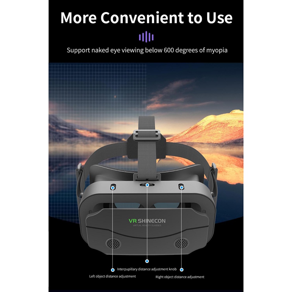 Saatnya menikmati sensasi 3D Virtual Reality lewat Smartphone menggunakan VR Box dari Shinecon. Terbuat dari material ABS berkualitas yang awet dan tahan lama, serta dilengkapi tali elastis yang mudah dikaitkan di kepala Anda dengan nyaman dan mudah. Nikmati sensasi 3D VR di rumah dan di mana saja dengan VR Box seri G13 dari Shinecon.
