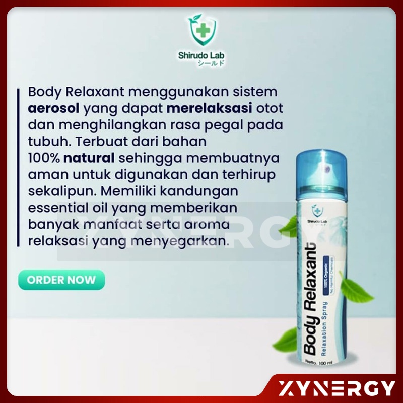 Body Relaxant siap memberi solusinya! Body Relaxant mampu meredakan pegal-pegal atau otot kencang tanpa perlu melakukan pijat relaksasi loh. Terbuat dari bahan-bahan natural dan essential oil dalam kemasan aerosol, membuat penyerapan minyak herbal meresap secara maksimal pada pori-pori kulit. Selain itu, Body Relaxant juga aman bila terhirup dan memberikan aroma relaksasi yang menyegarkan.