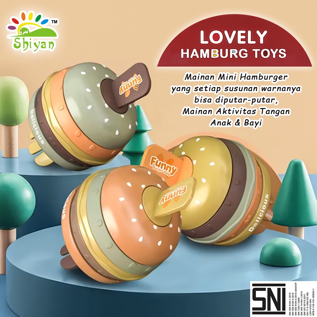 burger dan garpu mini yang dapat berputar dan berdentang pada 360 derajat pola timbul yang unik dan berwarna memiliki 3 model varian yang berbeda [PENGIRIMAN RANDOM/ACAK]