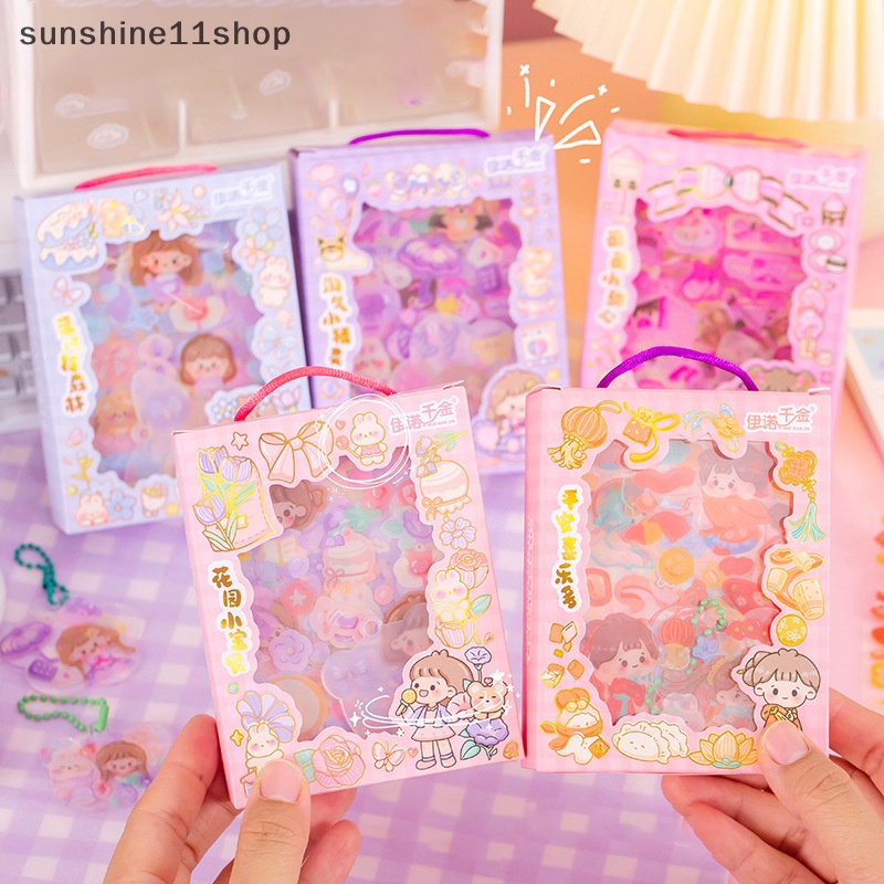 Sho 1Set Kartun Lucu Stiker Portable Gift Box Goo card Set DIY Gu-card Sticker Set Box Tangan Akun Hadiah Gu-card Set Stiker Aesthetic N