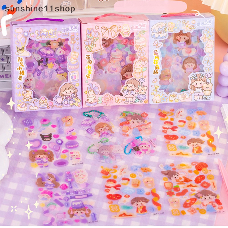 Buku & Alat Tulis > Buku Tulis & Kertas > Label & Stiker > Sho 1Set Kartun Lucu Stiker Portable Gift Box Goo card Set DIY Gu-card Sticker Set Box Tangan Akun Hadiah Gu-card Set Stiker Aesthetic N