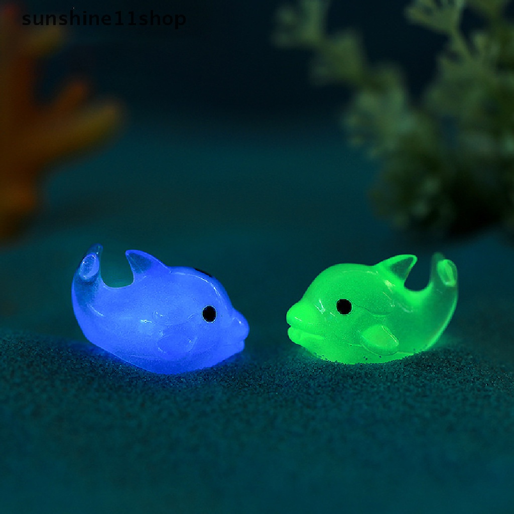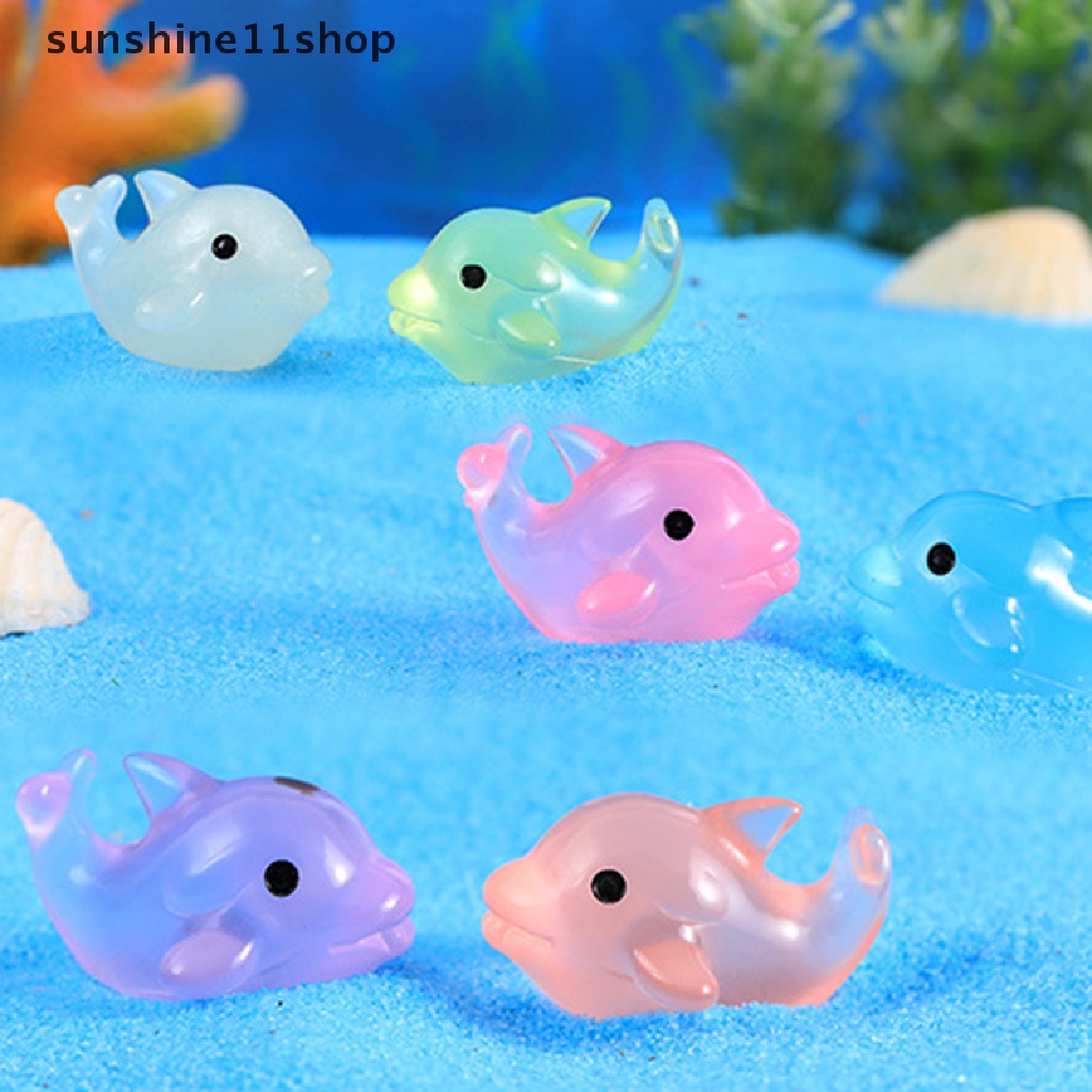 Sho Mungil Resin Warna-Warni Lumba-Lumba Lucu Mini Bercahaya Mikro Ornamen Miniatur Hewan Kerajinan Tangan Mikro Lanskap DIY Peri Taman Dekorasi N