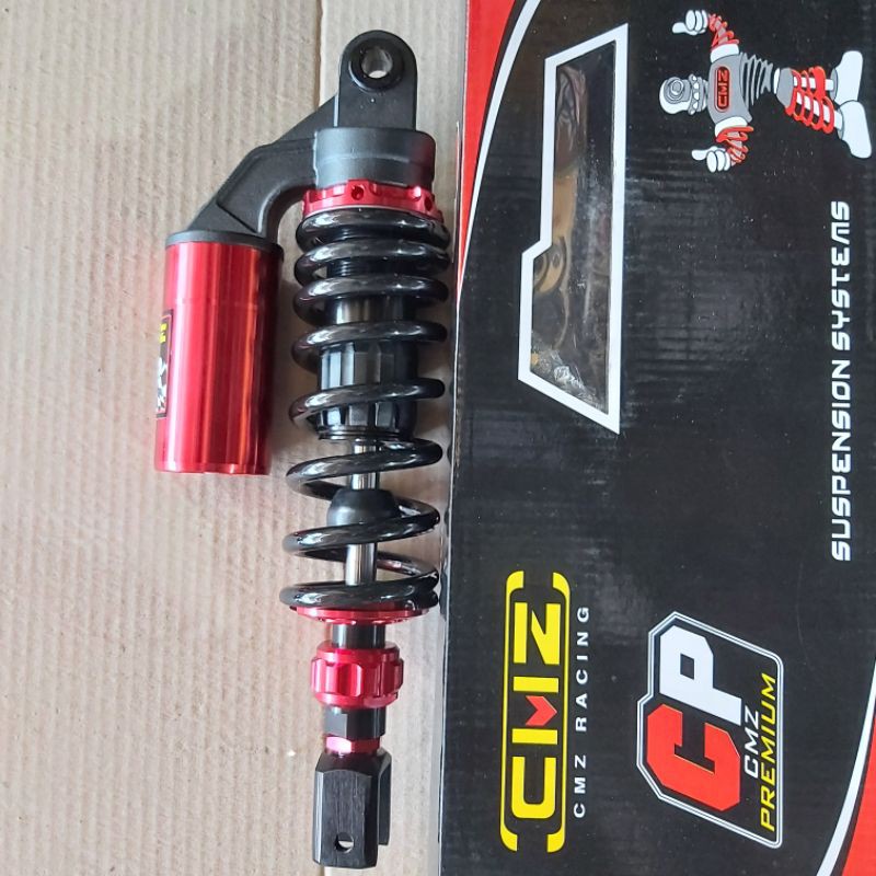 shock matic model tabung atas buat motor matic beat, scoopy, vario 110cc, mio, nex ready warna per merah, hitam, kuning, variasi tabung gold, tabung merah