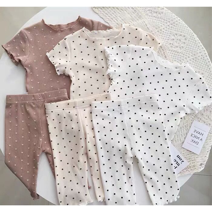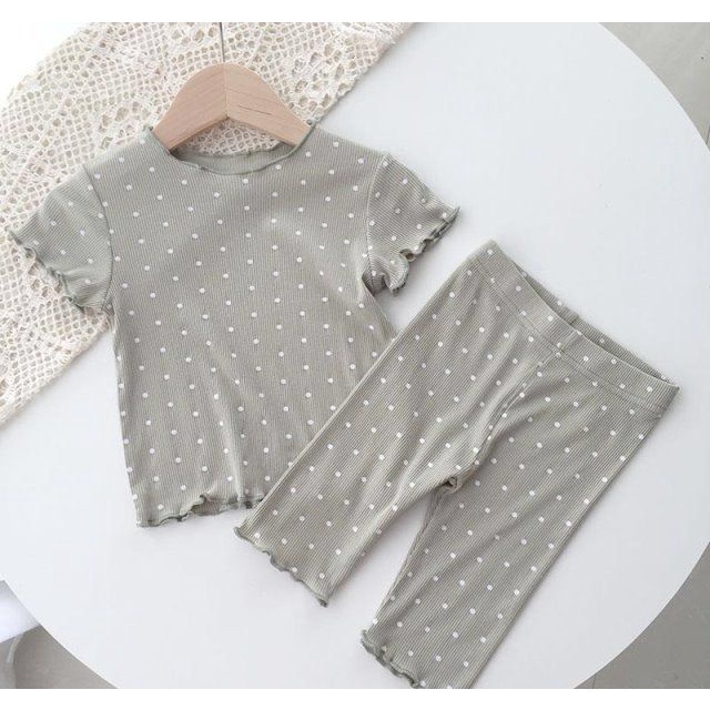 Detail SHOEGALERY TG1682 Set Baju Anak Perempua Motif PolkaDot Import Baju Rumahan Bahan Adem