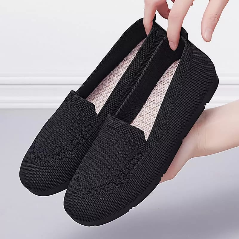 SHOEGALLERY "FREE BOX" LV0248 Sepatu Flatshoes Wanita Import Flatshoes Wanita Sepatu Sport Wanita Tanpa Tali Sepatu Rajut Hitam Wanita Sepatu Flyknit Wanita Import Fashion