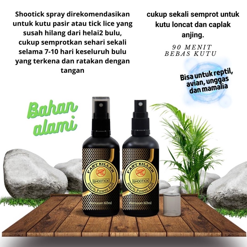 Fast killer shootick spray ATURAN PAKAI : khusus untuk kutu bulu semprotkan sehari sekali selama 7-10 hari. Untuk Kucing/Anjing: Semprotkan pada seluruh badan kucing/anjing secara merata. Obat alami dan aman tanpa harus dimandikan. Aman terjilat tanpa untuk semua umur. Aman digunakan untuk induk menyusui, hamil, bayi umur 1 hari.