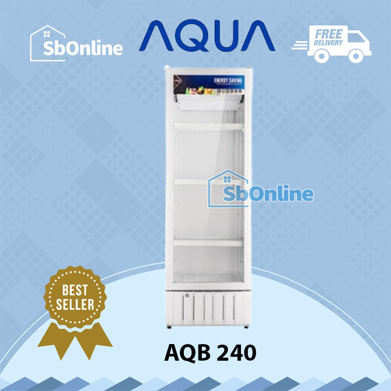 MODEL :AQB-240 SPESIFIKASI : Net Capacity (L) 230 Gross Capacity (L) 240 Voltase / Frequency Power Consumption (W) 210 Refrigerant R600a Shelves (Pcs) 3 LED Light Non CFC Free Handle Door Inner Liner Lock dan Key Water Tank Anti Fog dan Dew Double Layers Glass Door Adjustable Shelves With Wheel Unit Dimension (WxDxH) 556 x 530 x 1676 mm Net/Gross Weight (Kg) 49/53.5