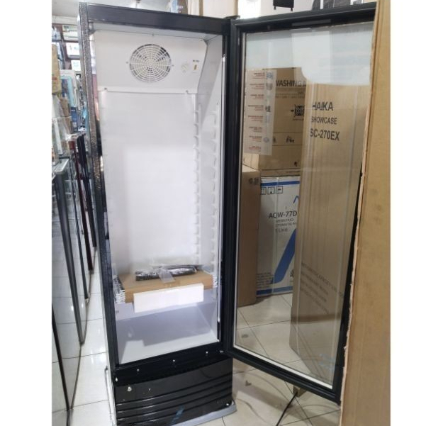 Fitur Produk : - Kapasitas : 250 Liter - 3D Cooling, dingin dari 3 sisi. lebih cepat. - 160 watt, hemat listrik - Big Compressor - Anti Fog System, Jelas terlihat, kaca tidak berembun. - Bottle Opener, Dilengkapi pembuka tutup botol - Vertical LED Lighting, dilengkapi lampu vertikal - Kaca Dua Lapis, dingin stabil. - Aman, showcase bisa dikunci. - Mudah dipindahkan, Roda 360° - 5 Rak - Suhu dapat diatur - GARANSI 1 TAHUN