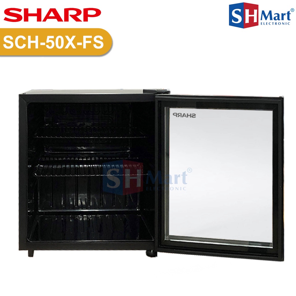 SHOWCASE MINI SHARP KAPASITAS 55 LITER SCH50XFS / SCH-50X-FS DISPLAY COOLER GARANSI RESMI