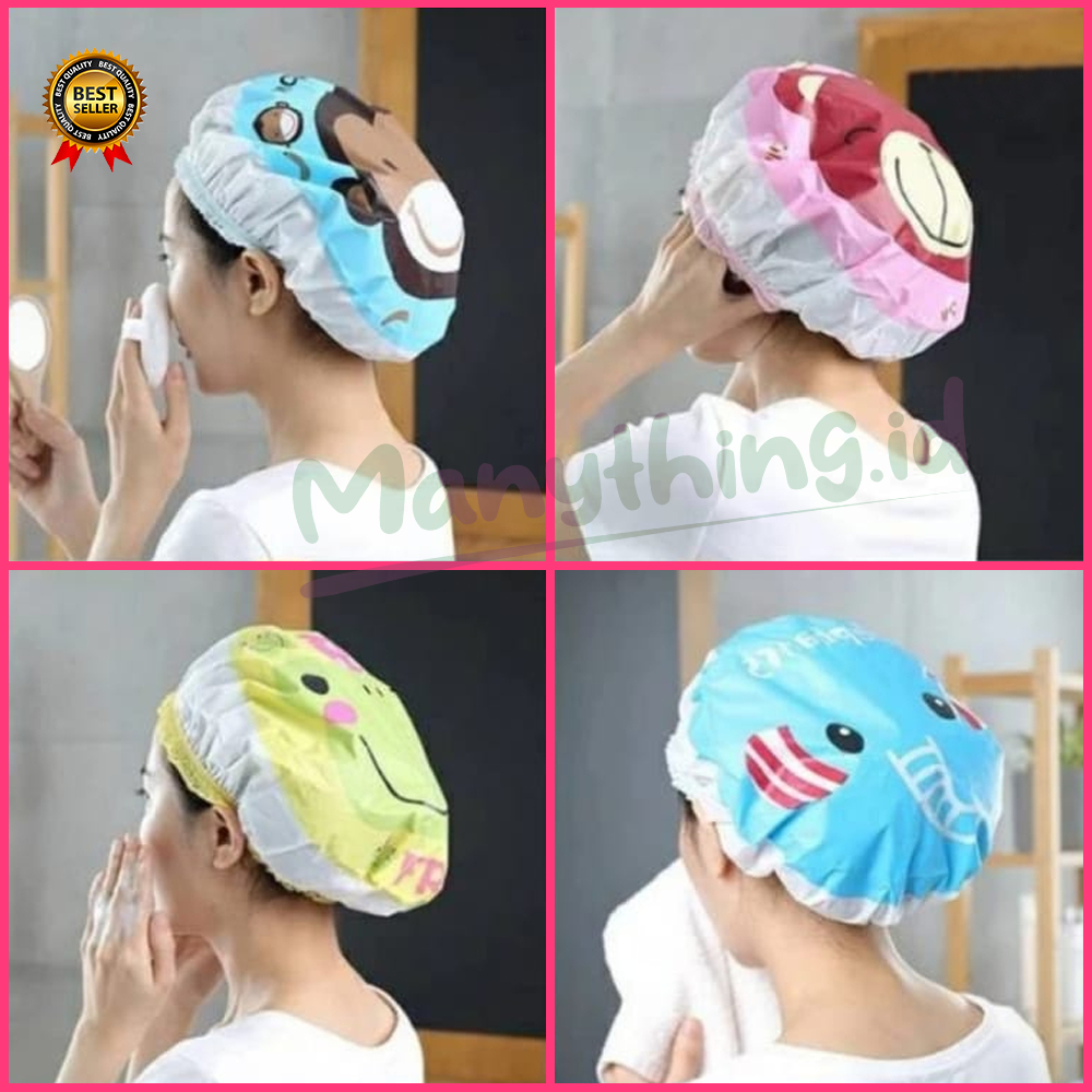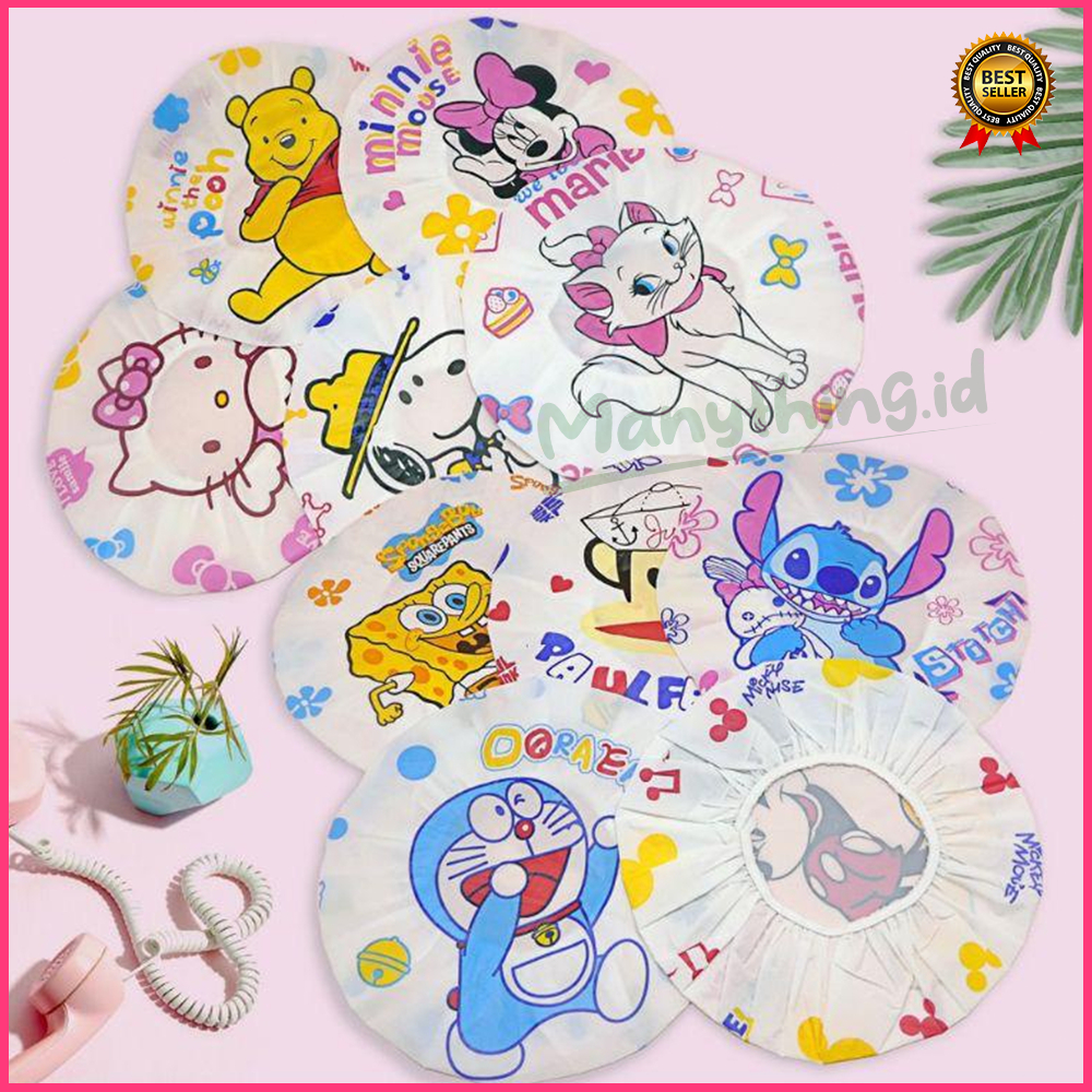 Shower Cap pelindung rambut agar tidak basah pada waktu mandi dengan karakter yg lucu dan imut menambah keindahan dan semangat saat mandi, Apalagi bila bersama si kecil, makin meningkatkan keharmonisan keluarga.