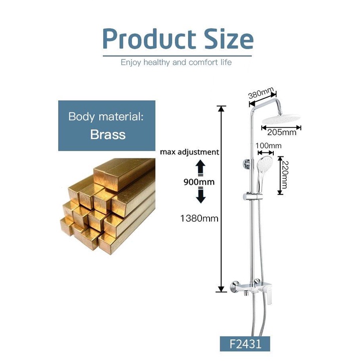 Shower Column Set Kotak Stainless Shower Mandi / Kran Panas Dingin Body Kuningan Model Terbaru 1 set termasuk : ~ 1 pcs kran panas dingin kuningan (included nepel dan ring tembok) ~ Bahan tiang stainless dgn tinggi 95cm ~ 1pcs wall shower ABS model Bulat diamter 20cm ~ 1set hand shower ABS model Bulat 4 Mode Jenis semburan air Warna putih diameter 9cm + selang shower 1,5mtr - Tiang shower dapat di atur panjang pendeknya keterangan lebih jelas langsung chatt sallernya Note : Untuk model handle krannya sesuai gambar yg terakhir, tolong dicek gambarnya, terimakasih