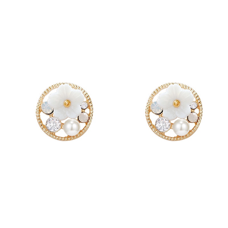 Detail Shuling French Elegant Retro Earrings Super Cute Pearl Rhinestone Earrings Small White Flower Stud Earrings