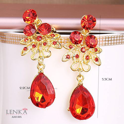 Detail [SIAP KIRIM] AKSESORIS ANTING WANITA PESTA PENGANTIN KUPU MERAH IMPOR AAR005