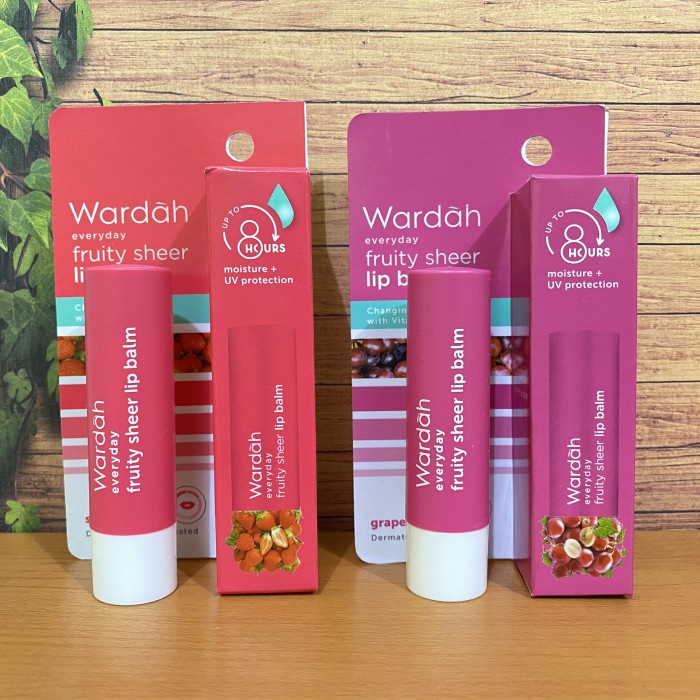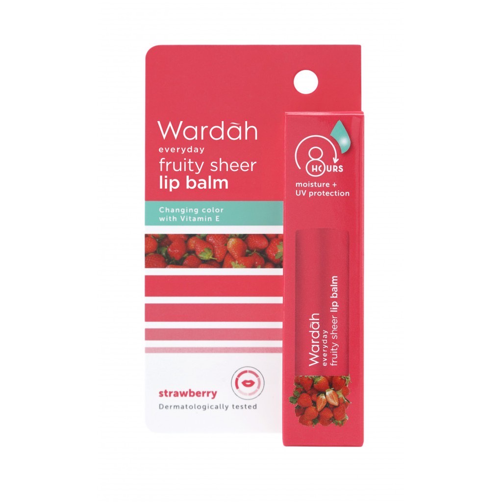 Wardah Everyday Fruity Sheer Lip Balm Strawberry 4gr, Lip Balm aroma buah dengan keunikan warna yang dapat berubah dan berbeda di setiap bibir dan kulit, membuat bibirmu tampak sehat cantik natural.