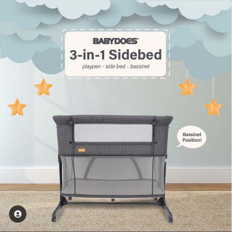 kasur bayi yang nyaman, aman dan mudah untuk digunakan. Dengan fitur 3-in-1, kasur dapat diatur menjadi 3 posisi yaitu posisi playpen, sidebed dan bassinet! Selain itu, terdapat juga storage box yang besar dibawah kasur loh mom and dad! . Fitur babydoes 3-in-1 Sidebed : ๐ Ketinggian kasur yang dapat diatur ๐ Fungsi pengunci pada kedua sisi kasur ๐ Bahan yang lembut dan nyaman, serta alas tidur dengan bahan berkuakitas ๐ Feeding position 30ยฐ yang mencegah bayi tersedak/gumoh saat makan ๐ Dilengkapi dengan keranjang dibawah kasur untuk menyimpan berbagai perlengkapan bayi ๐ Dapat digunakan sebagai sidebed (tempat tidur disebelah kasur orang tua) yang dilengkapi dengan pengikat ๐ Memiliki posisi playpen untuk anak bermain dan berdiri ๐ Memiliki roda yang dilengkapi dengan rem