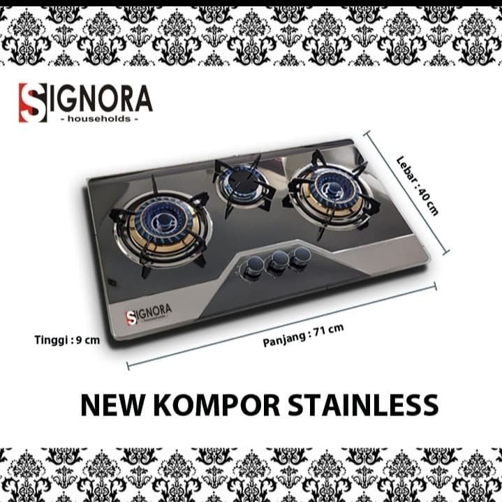 Detail Signora Kompor Stainless New Grand | 3 Burner / 3 Tungku