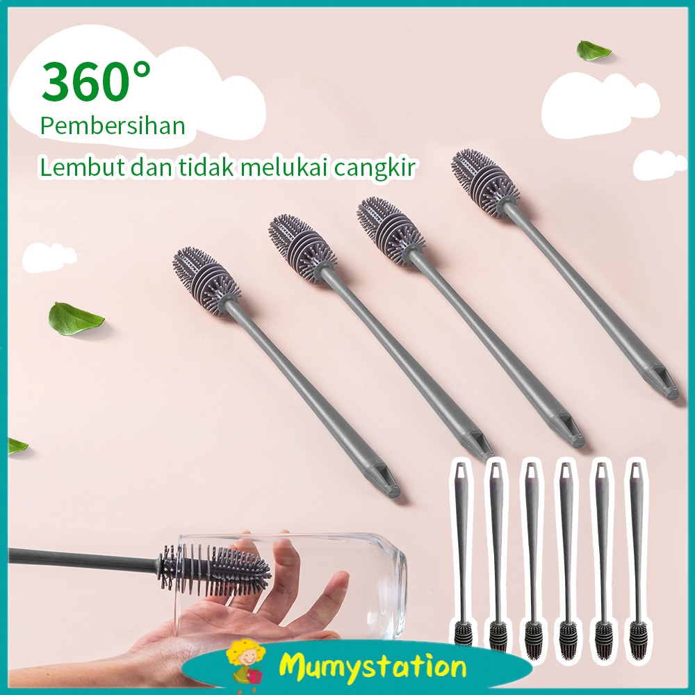 SIKAT BOTOL DENGAN BULU BAHAN SILIKON ANTI BAKTERI DAN DIJAMIN LEBIH HIGIENIS DENGAN SIKAT BULU PADA UMUMNYA.