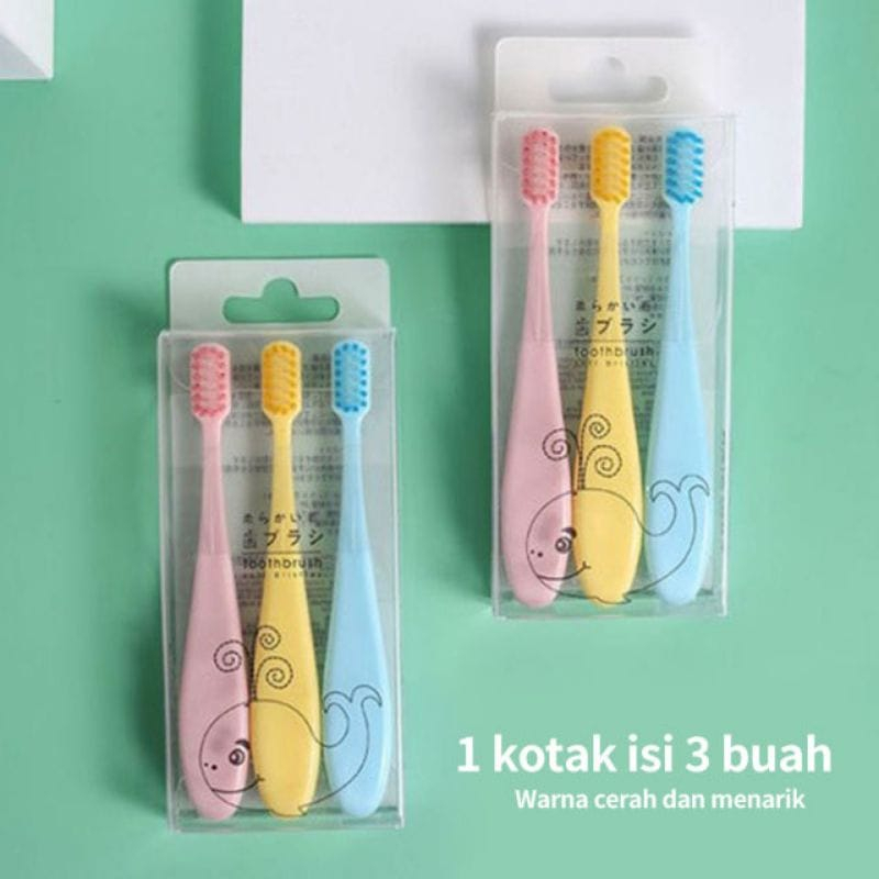 Isi produk: ~ 3pcs Sikat Anak dengan 3 macam warna dalam 1kotak