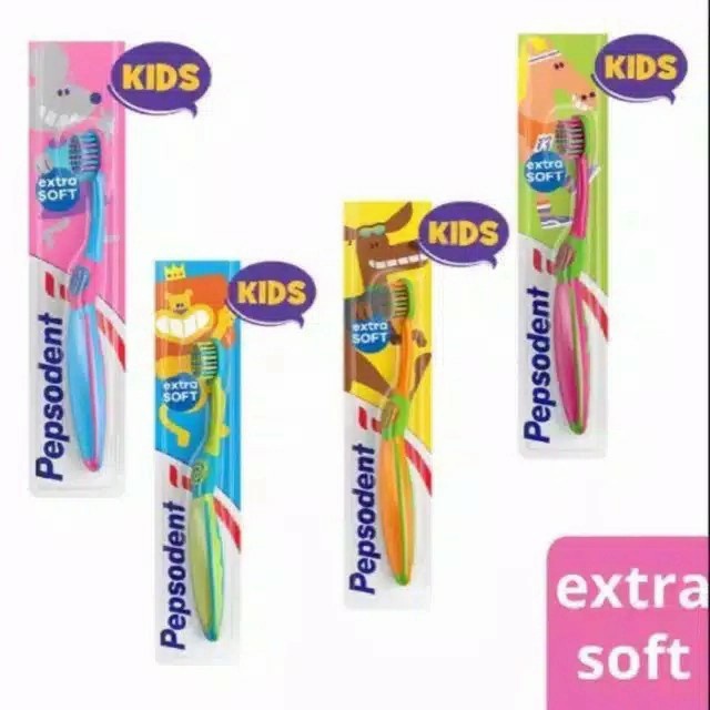 Sikat Gigi Pepsodent Kids, didesain khusus untuk anak-anak dengan bulu sikat yang lebih lembut agar mampu membersihkan sela-sela gigi tanpa melukai gusi Dapat digunakan untuk anak berusia diatas 2 Tahun Dilengkapi dengan kepala sikat kecil yang nyaman untuk mulut anak Bulu sikat halus cocok untuk gusi anak Gagang tidak mudah slip dan mudah dipegang