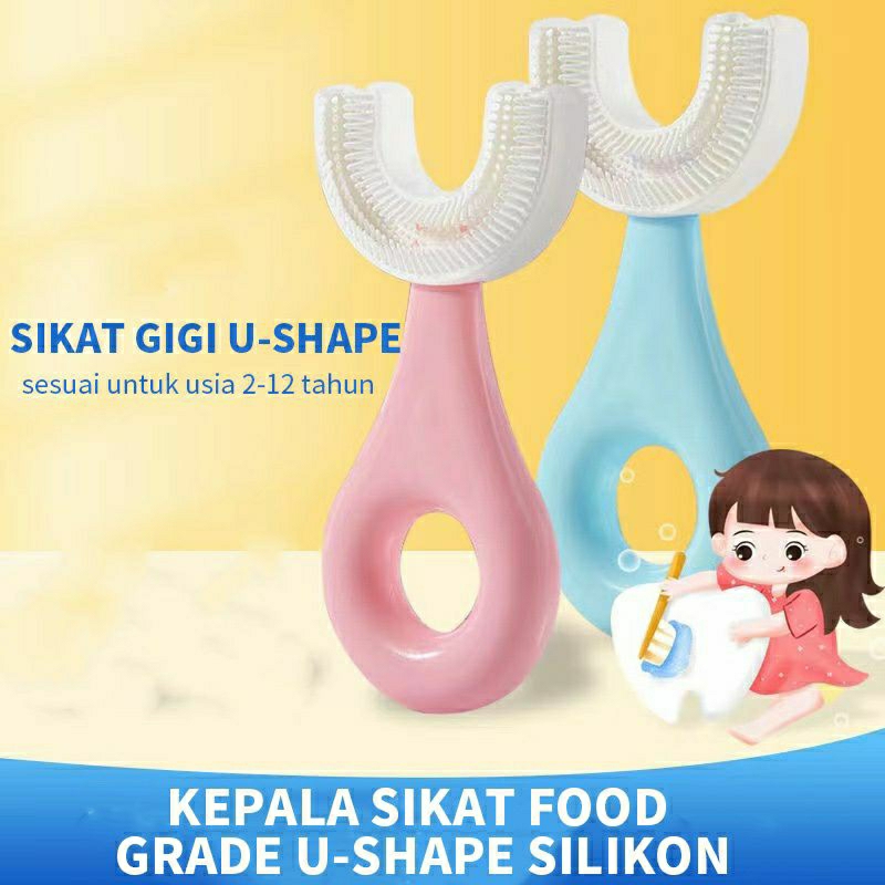 Detail Sikat Gigi Bayi Silikon U Shape Silikon 2-6 Tahun | Sikat Gigi Anak, Balita, Silicone 360° Bentuk U
